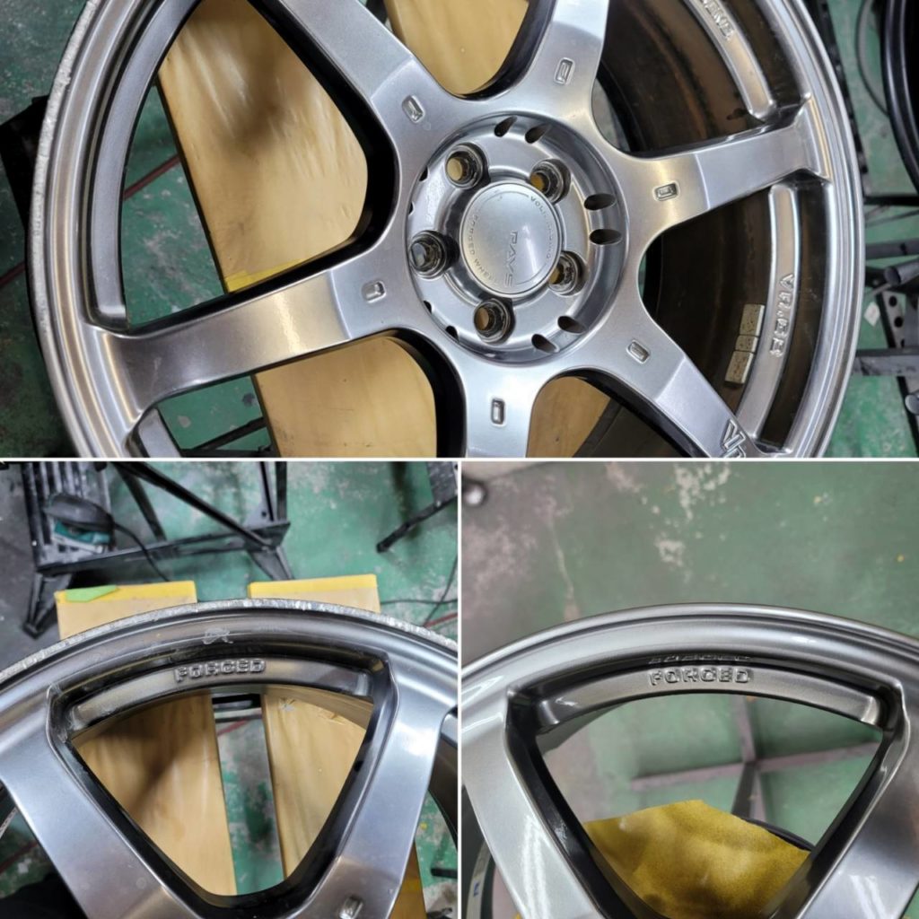 RAYSアルミホイール ハイパーシルバー塗装 リム部ガリキズリペア