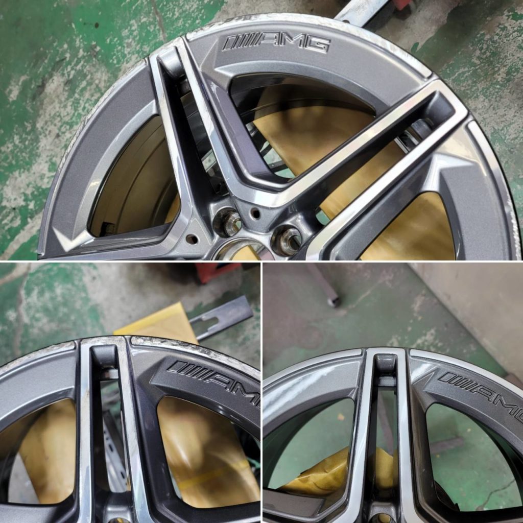 今回のお客様は、メルセデスベンツ AMG 純正ホイールのダイヤカット部と側面ガンメタ部分のキズリペアになります。