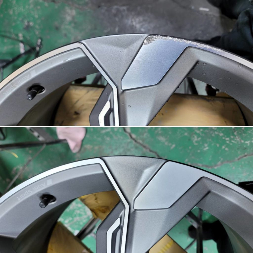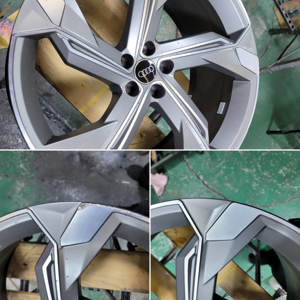 今回のお客様、Audi純正ホイールのリム部ガリキズリペアになります。