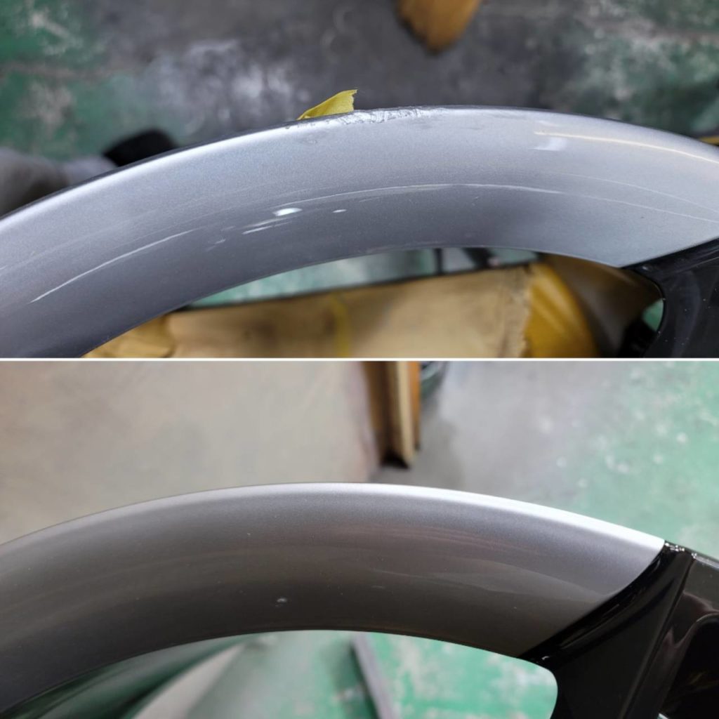 キズ部分を修正しパテ入れ形成しブラックと調色したシルバー吹きクリヤで仕上げてあります。