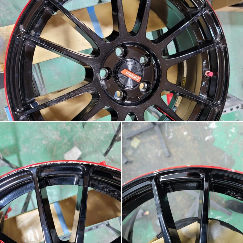 今回のお客様は、レイズホイールのブラック塗装レッドラインのリム部ガリキズリペアになります。