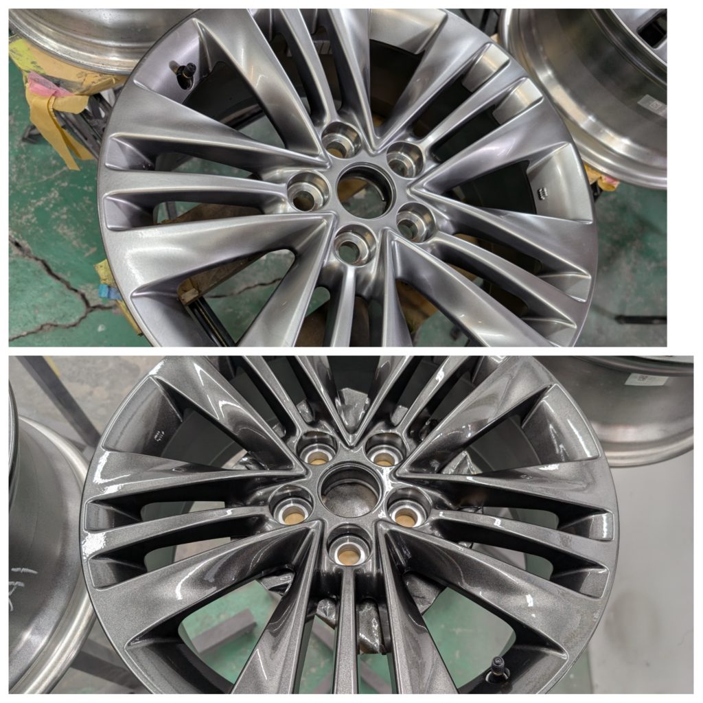 今回のお客様は、トヨタ アルファード純正アルミホイールにハイパーシルバー塗装からシルバー粗めのガンメタ塗装へのカラーチェンジになります。