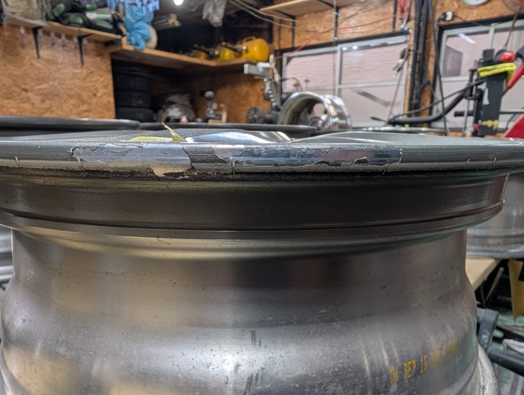 こちらのホイールは、リム部にはなりますが、リム部落ち込み部分を中心に塗装剥がれがすごい状態です。