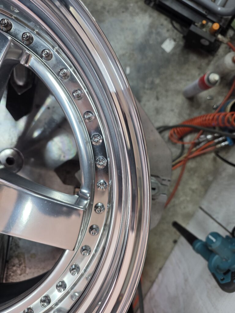 あの深かったガリ傷が嘘のように消え、リムの滑らかなカーブと、鏡面のような美しい輝きが完全に復活しました。
